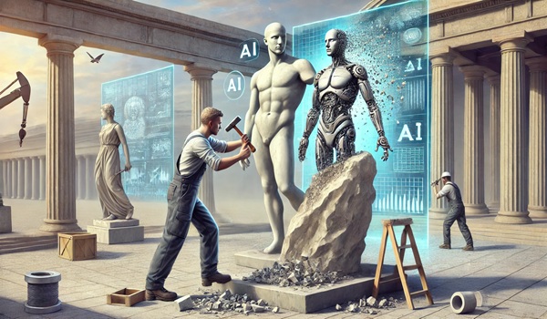 This reversal is the step where actual machine learning takes place. Think of it as Michaelangelo removing chunks of marble, bit by bit, until he creates David… but in software and data form. When software learns to do this with real images, it is ready to take the next step: creation.